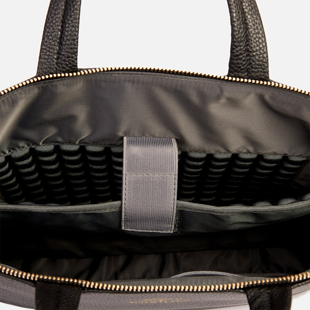 Designed with the modern professional in mind, this laptop bag offers a winning combination of style, comfort, and functionality. Its sleek black pebble finish exudes self-confidence, individuality, and ambition. Crafted from the finest quality pineapple leather and featuring a recycled nylon lining, it's a statement of your eco-conscious values. Suitable for both long-distance travel and day-to-day activities, it comes equipped with a range of features to keep you prepared at all times.
